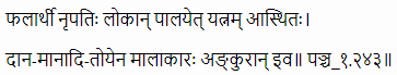 Translation: Just as a gardener waters his plants regularly in the expectation of getting good flowers/ fruits, a King who wants good results should carefully nurture his subjects with respect and material support.