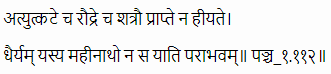 Translation: That Raja never gets defeated whose courage does not diminish even when confronted by very fierce and aggressive enemy.