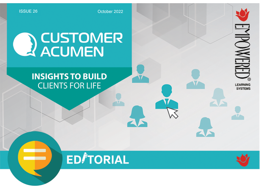 We value your relationship with us and look forward to your feedback and comments on how best we can serve you through our e-zine, Customer Acumen.