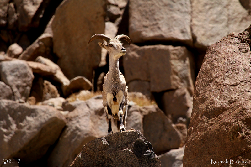 Naturalist, Rupesh Balsara spots the Himalayan blue sheep or the Bharal during his latest trip to Leh. The Bharal has the ability to remain motionless and can easily camouflage if noticed. They are active throughout the day, alternating between feeding and resting on mountain slopes.