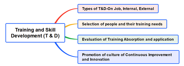 Sculpting a useful associate / team member to suit the organizational requirement is the purpose of Training & Development (T & D). There are many ways of training a team member. It can be on the job training under the guidance of a supervisor or a fellow trained associate, by an organized training program with internal faculty, or by participating in an external training program, or a senior executive trains the team member. All these methods need varying quantum of expenses. But they deliver results in the form of capable employees as required, by the responsibilities and tasks to be carried out and therefore these should be considered as investments in manpower development rather than an expense. Organizations should indeed make these investments and ensure payback. T & D to develop a mindset to critically look at any process and think of carrying out improvements is essential. Similarly innovative mindset to suggest new ways of doing activities also needs development through T & D.